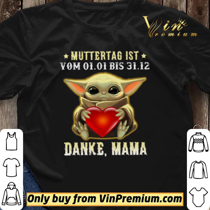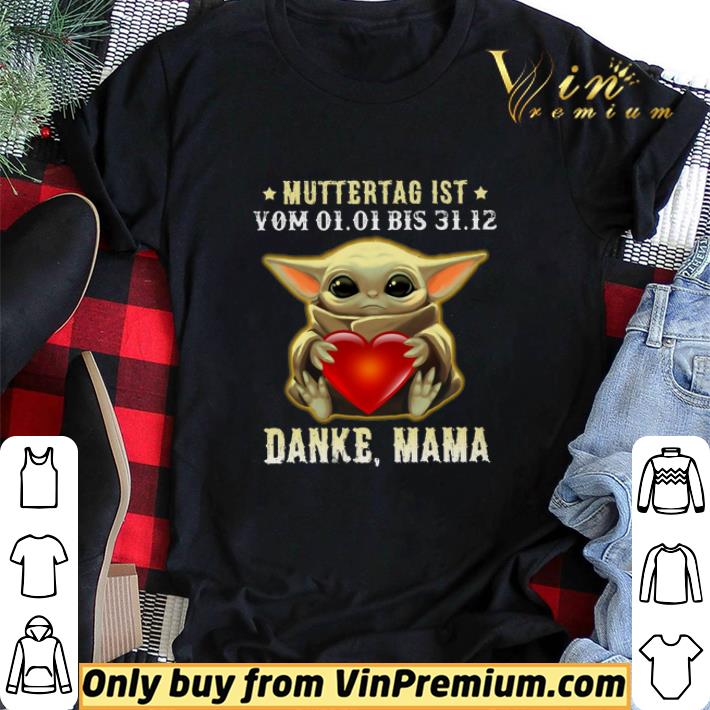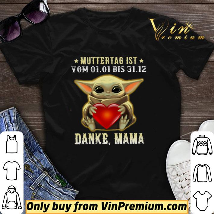 Awesome Baby Yoda Hug Heart Muttertag Ist Yom 01-01 Bis 31-12 Danke Mama shirt sweater, Hoodie, Sweater, Longsleeve T-Shirt For Men and Women