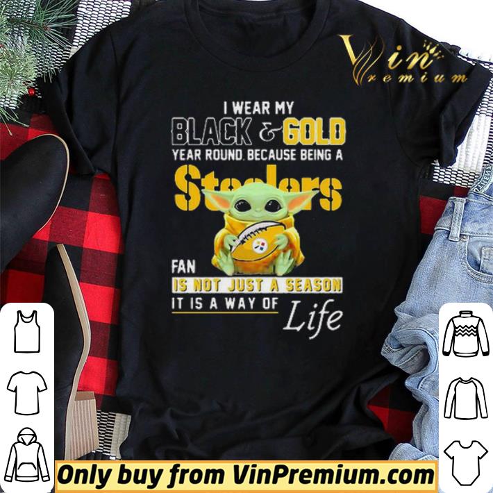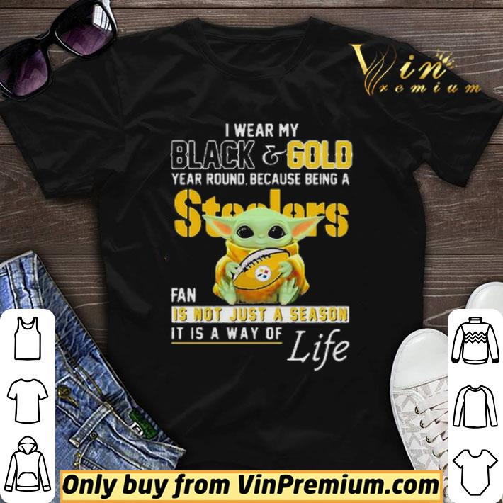 Baby Yoda I Wear My Black And Gold Year Round Because Being A Steelers Fan shirt sweater, Hoodie, Sweater, Longsleeve T-Shirt For Men and Women