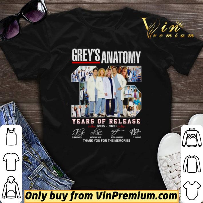 Grey’s Anatomy years of release 2005 2020 thank you for the memories shirt sweater, Hoodie, Sweater, Longsleeve T-Shirt For Men and Women