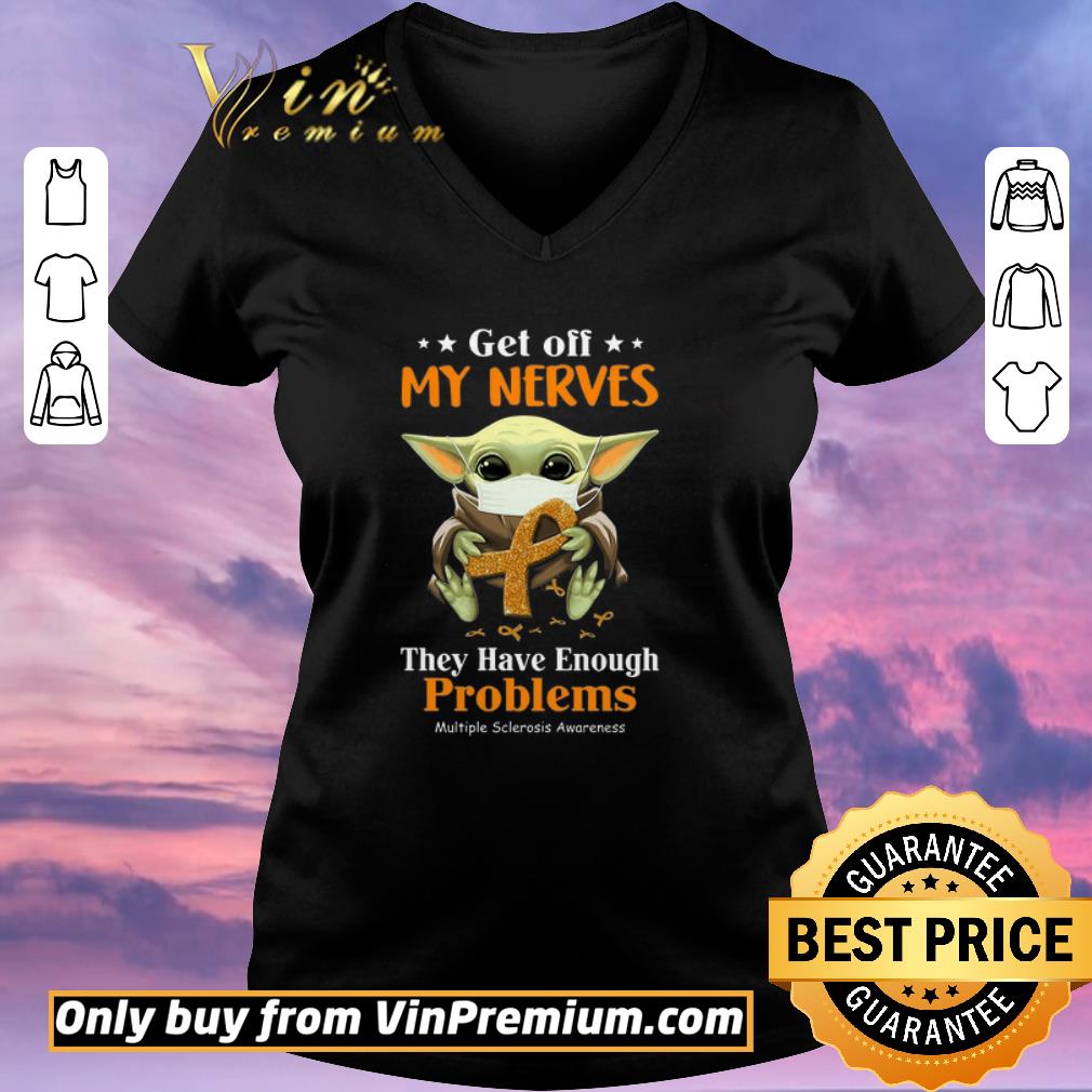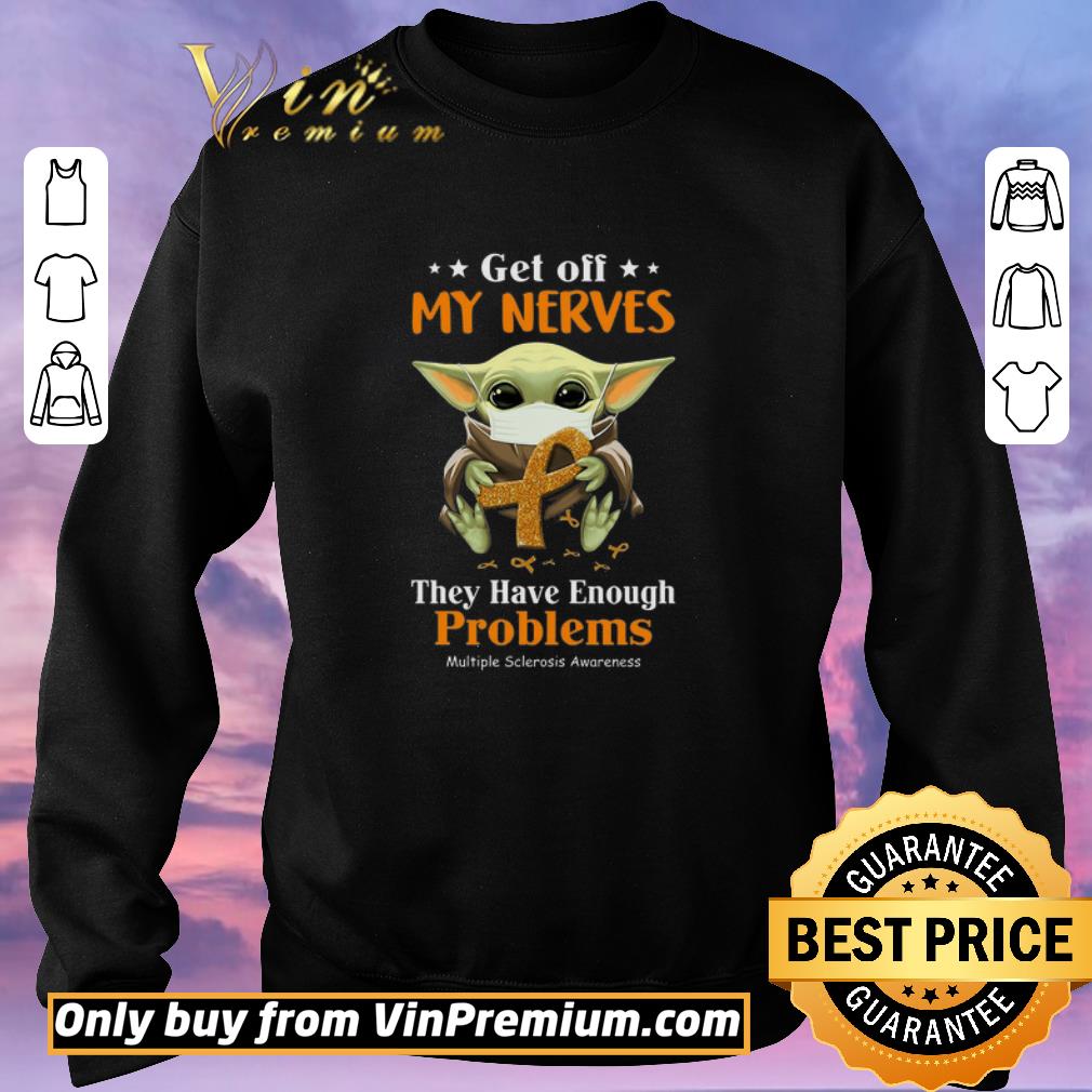 Top Baby Yoda Mask Cancer Awareness Get Off My Nerves They Have Enough Problems shirt sweater, Hoodie, Sweater, Longsleeve T-Shirt For Men and Women