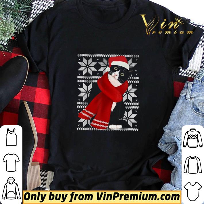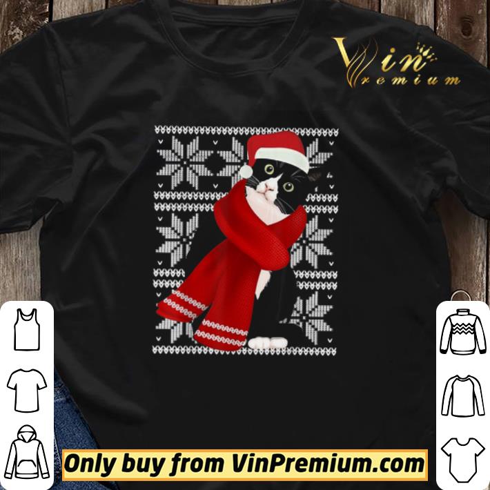 Ugly Christmas Black Cat Santa Hat Scarf shirt sweater, Hoodie, Sweater, Longsleeve T-Shirt For Men and Women